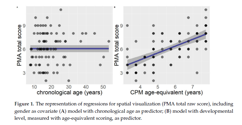 - An ulterior topic explored by our group is learning and skill acquisition in Down Syndrome, known as the most common genetic cause of intellectual disability (Kittler et al., 2008). Specifically, we study developmental trajectories and acquisition of spatial skills in people with typical development vs Down Syndrome across all ages. The skills explored in our researches are spatial working memory (the spatial-sequential vs spatial simultaneous components; see Carretti et al., 2022) and spatial visualization compared to mental rotation abilities (see Doerr et al., 2021).