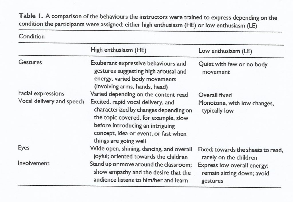 - Effects of enthusiasm on learning and motivation